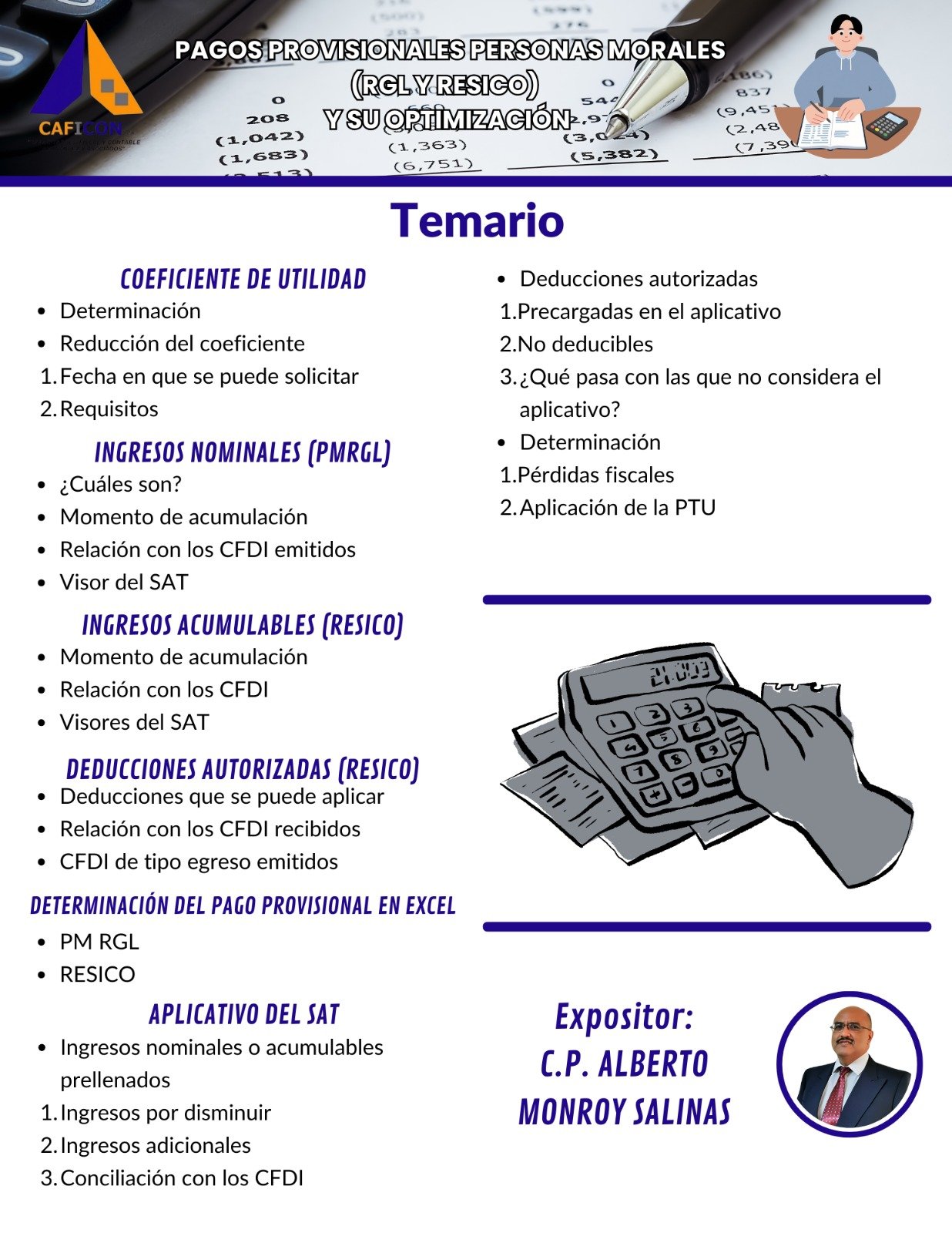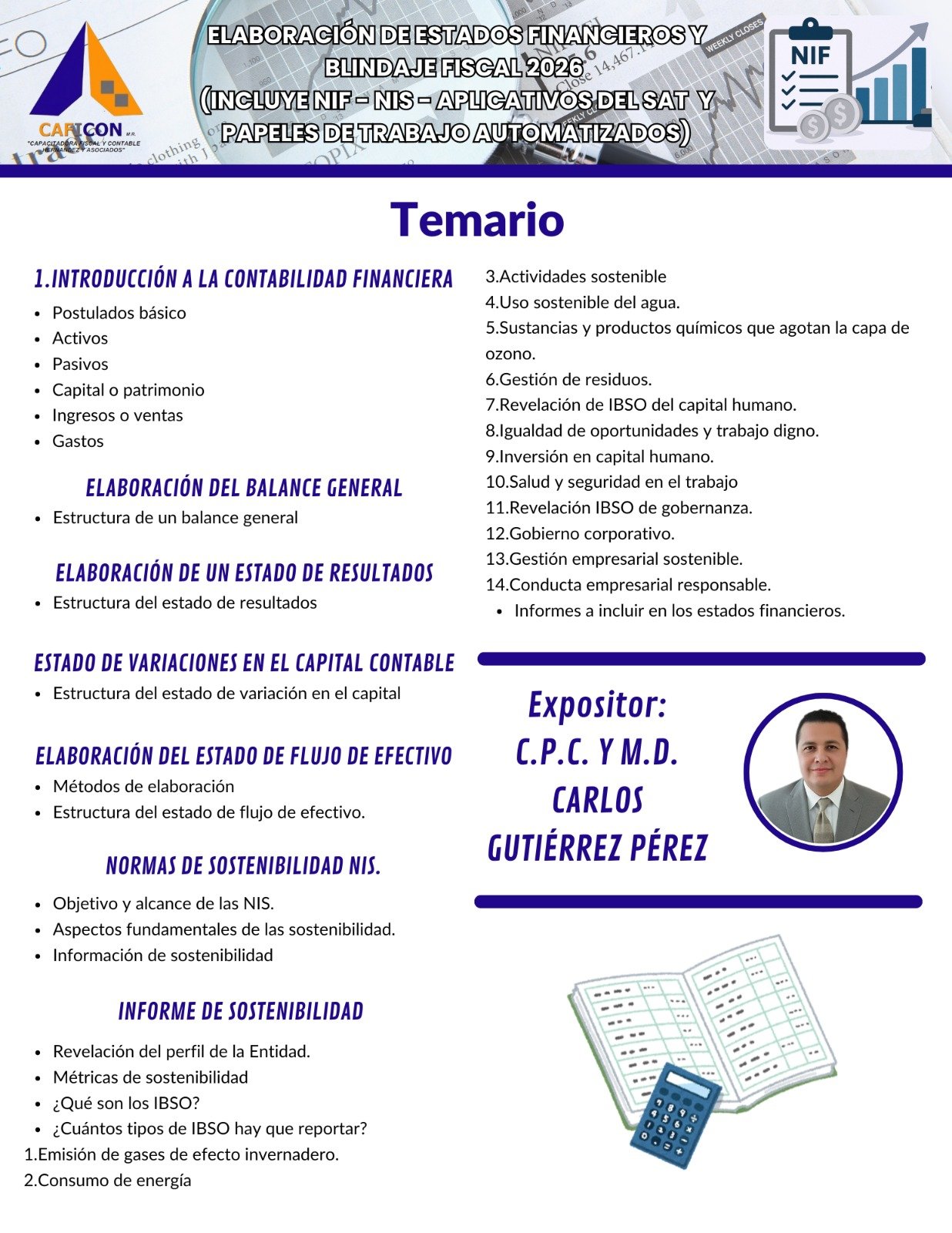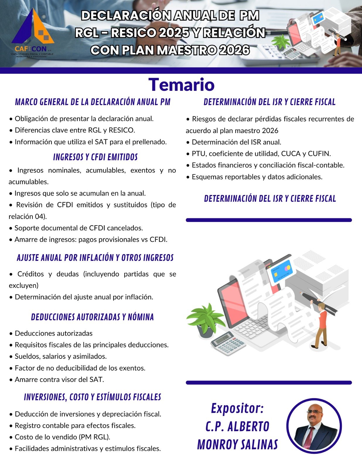 Nuestros cursos combinan teoria y practica, impartidos por especialistas con amplia experiencia, para brindarte herramientas claras, actuales y aplicables a la realidad profesional. Dirigido a contadores, administradores, empresarios y profesionales que buscan minimizar riesgos, optimizar procesos y actuar con seguridad juridica.